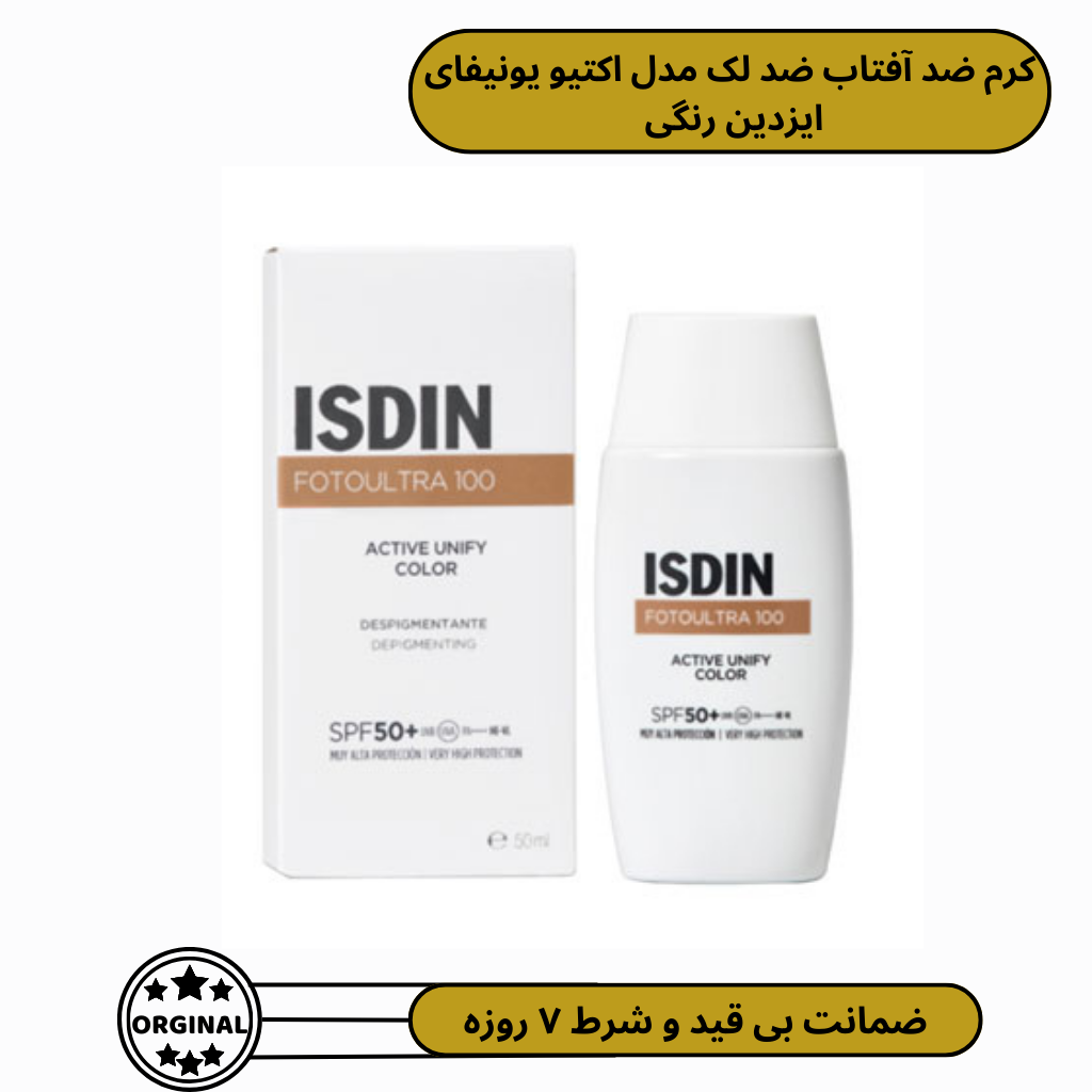 ضد آفتاب اکتیو یونیفای ایزدین (ISDIN Fotoultra 100 Active Unify SPF 50+) یک محصول پیشرفته برای مراقبت از پوست است که با محافظت کامل در برابر اشعههای مضر UVA و UVB، به کاهش لکهای پوستی و جلوگیری از ایجاد آنها کمک میکند. این ضد آفتاب بی رنگ با بافت سبک و جذب سریع طراحی شده و علاوه بر روشنتر کردن پوست، در تمامی فصول قابل استفاده است. مناسب بودن برای انواع پوست، حتی پوستهای حساس، از دیگر ویژگیهای برجسته این محصول است. این ضد آفتاب از برند محبوب ایزدین به عنوان یک گزینه حرفهای در روتین روزانه مراقبت از پوست معرفی میشود.