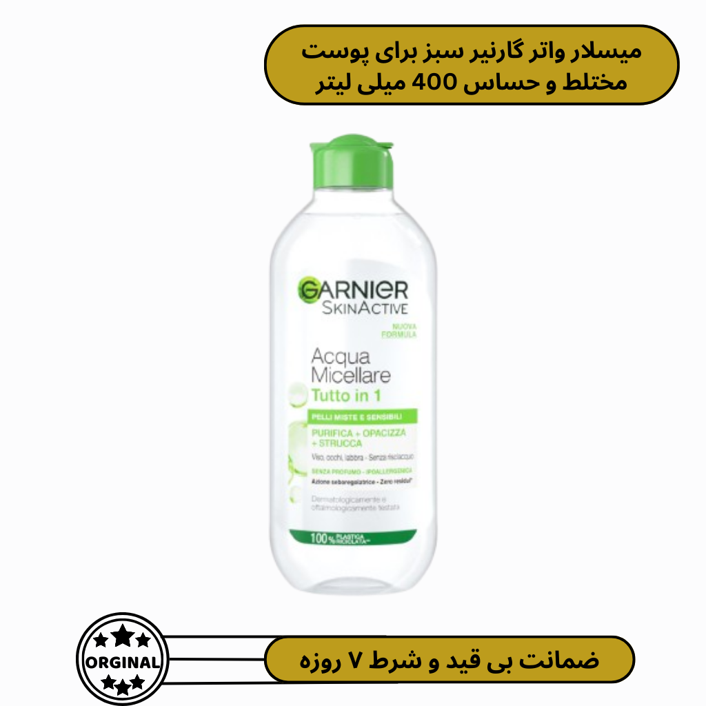 - میسلار واتر گارنیر سبز برای پوست مختلط و حساس یک محصول آرایشی و بهداشتی است و باید با احتیاط استفاده شود.